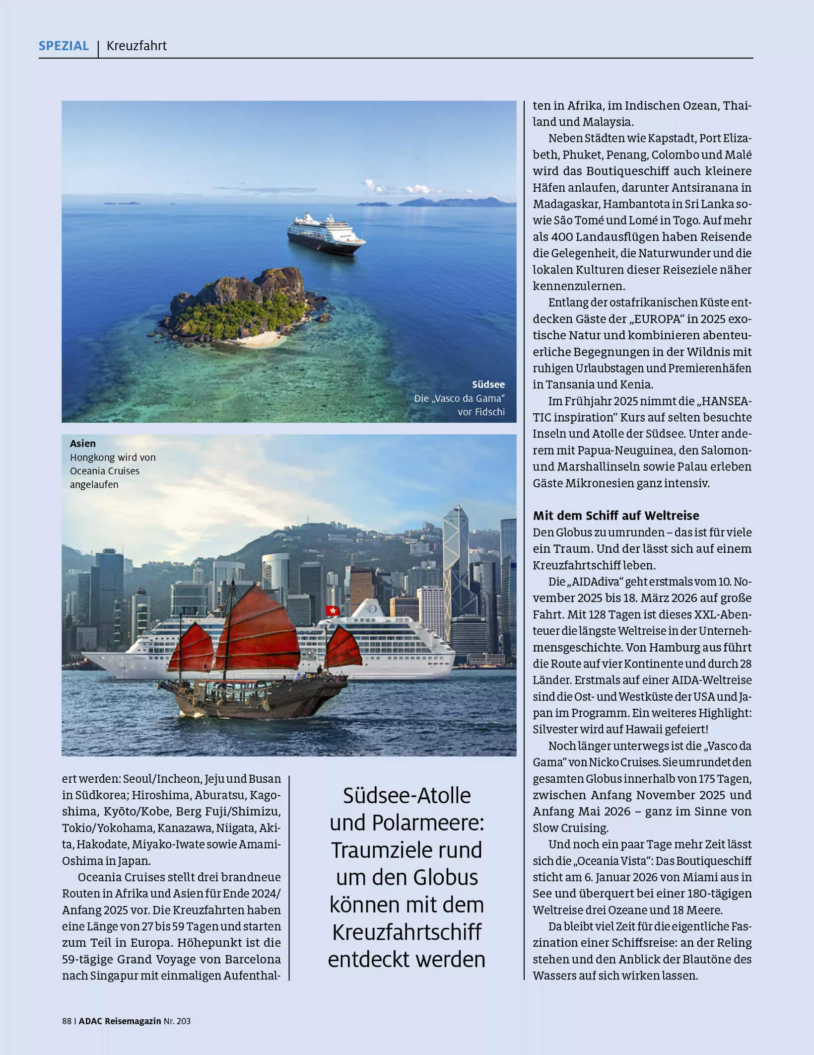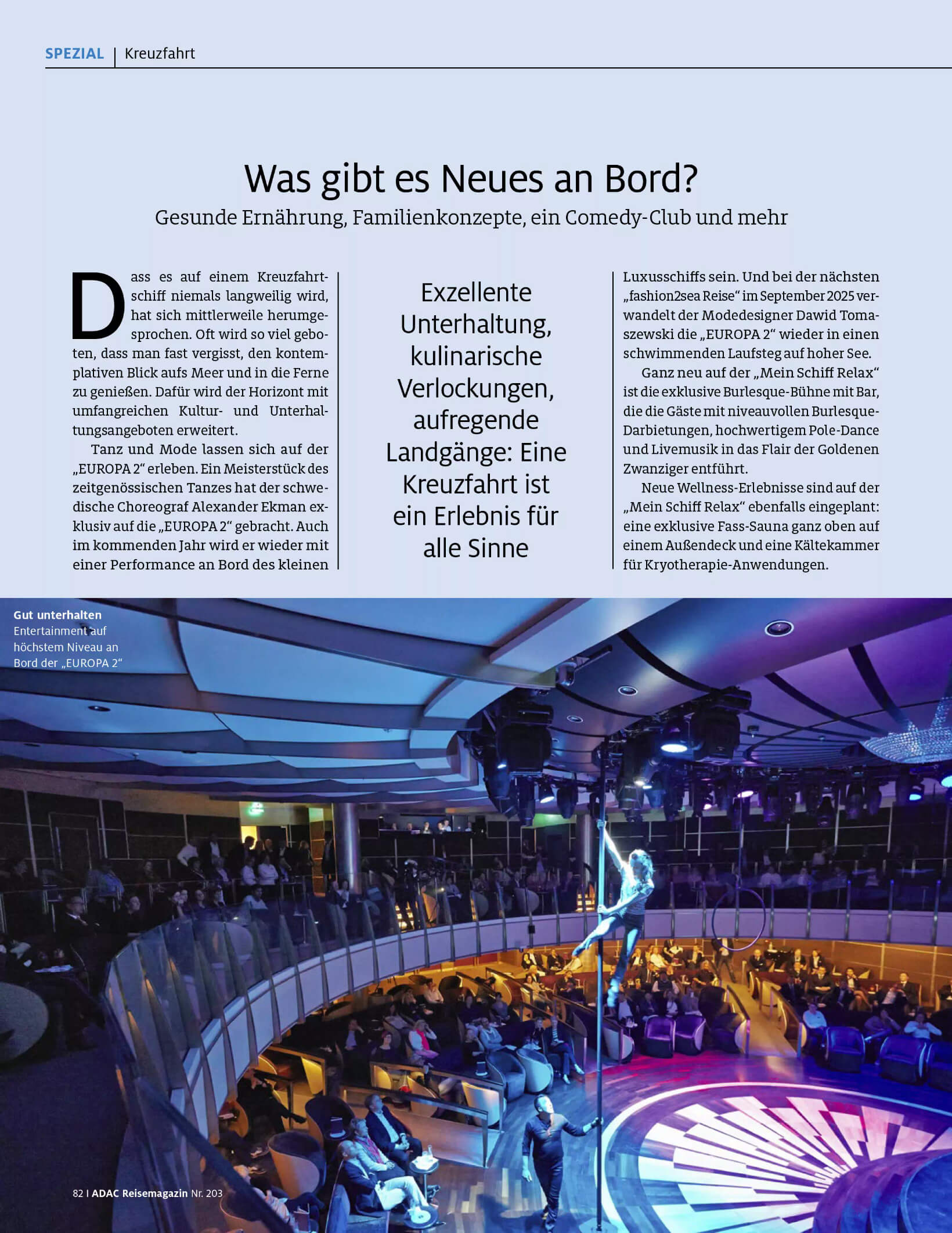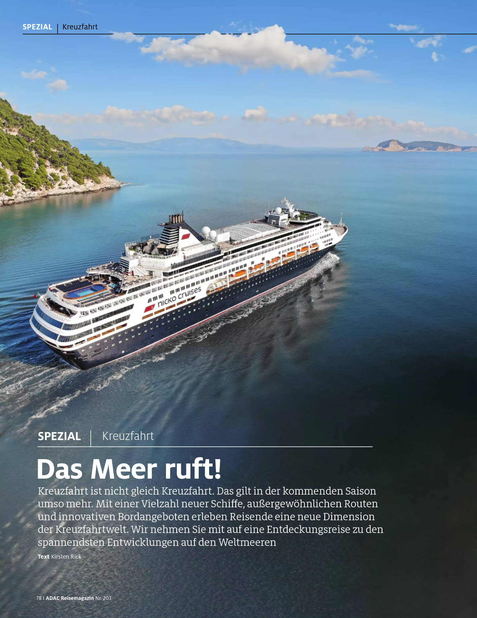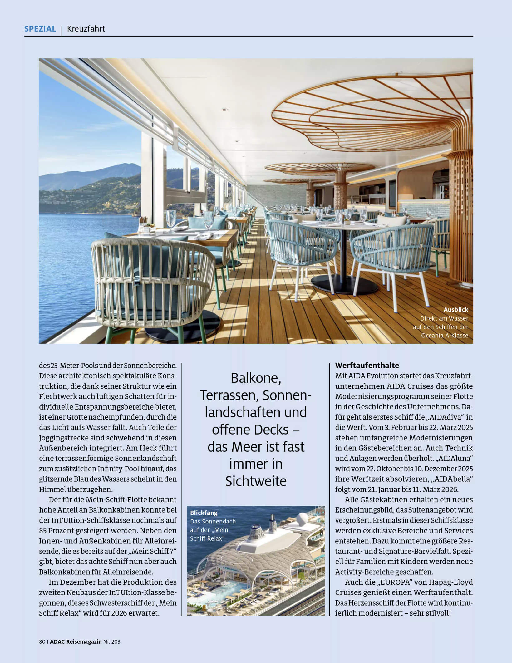 Für das ADAC Reisemagazin Nr. 203 bin ich tief in die Kreuzfahrt-Recherche eingestiegen.