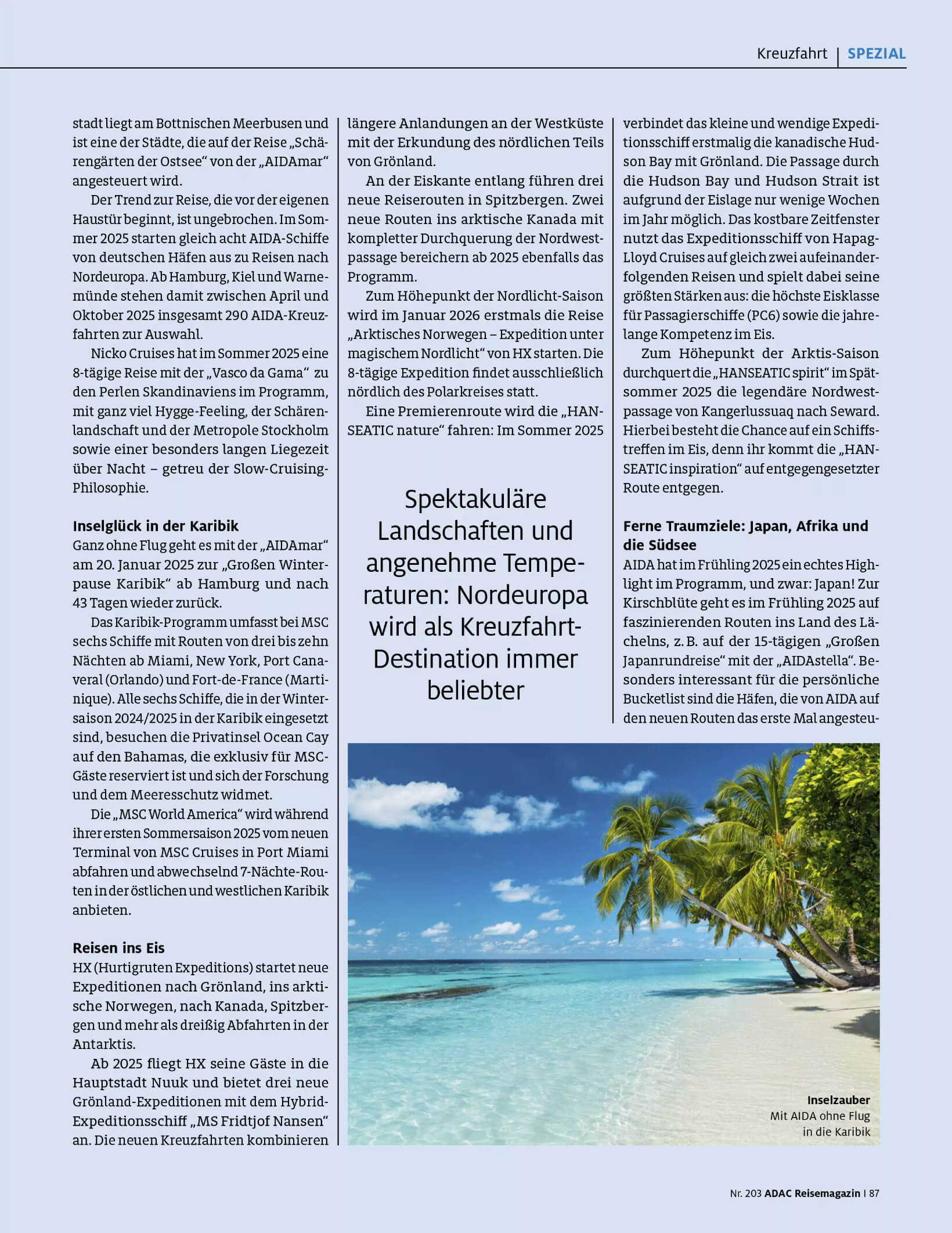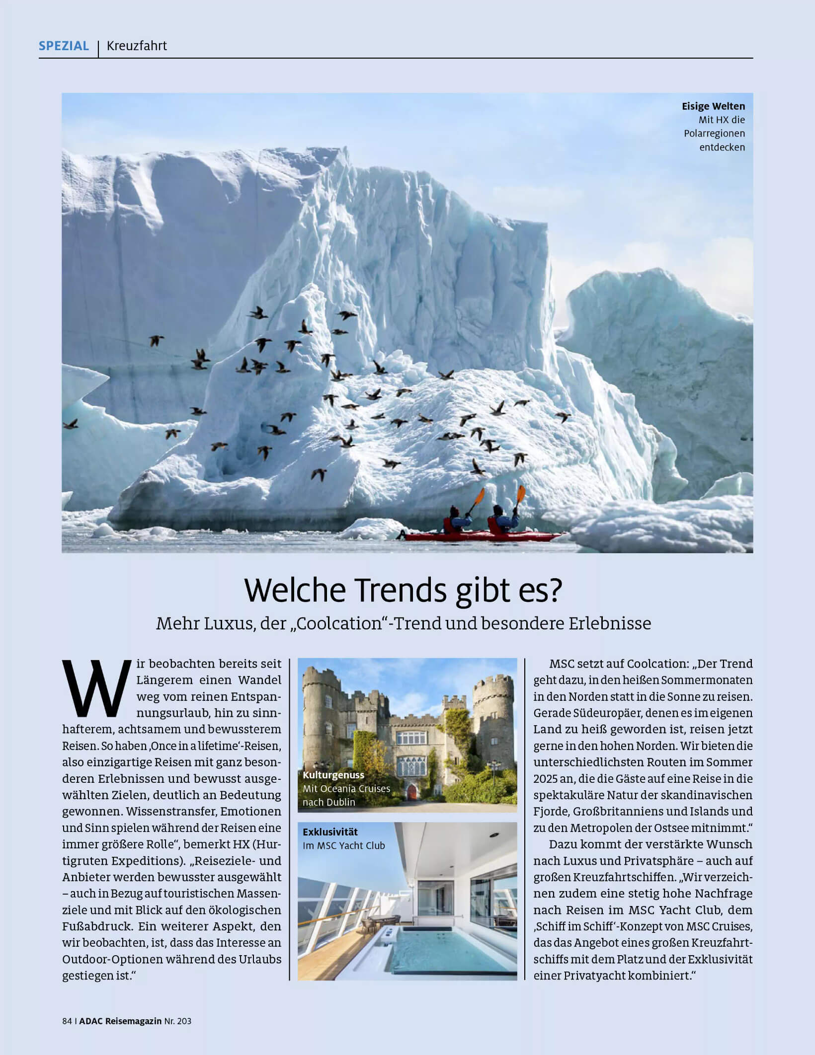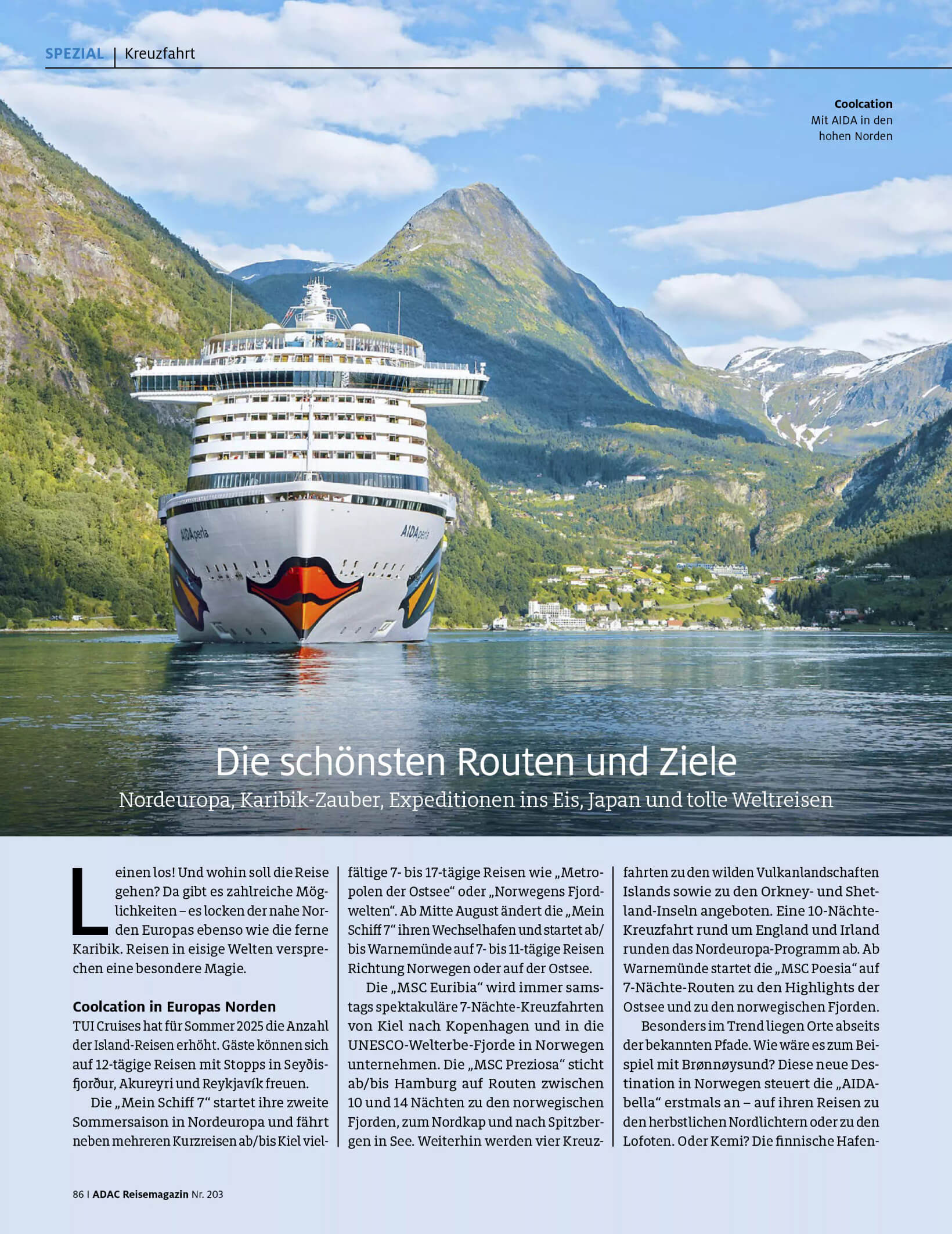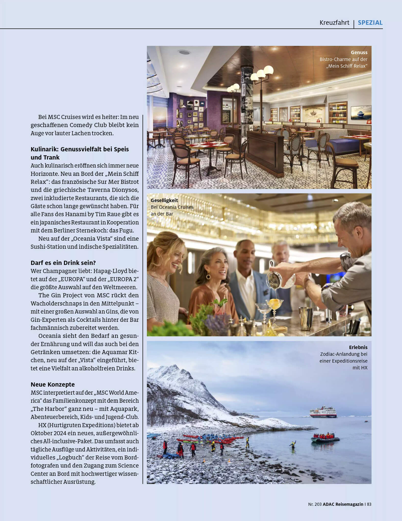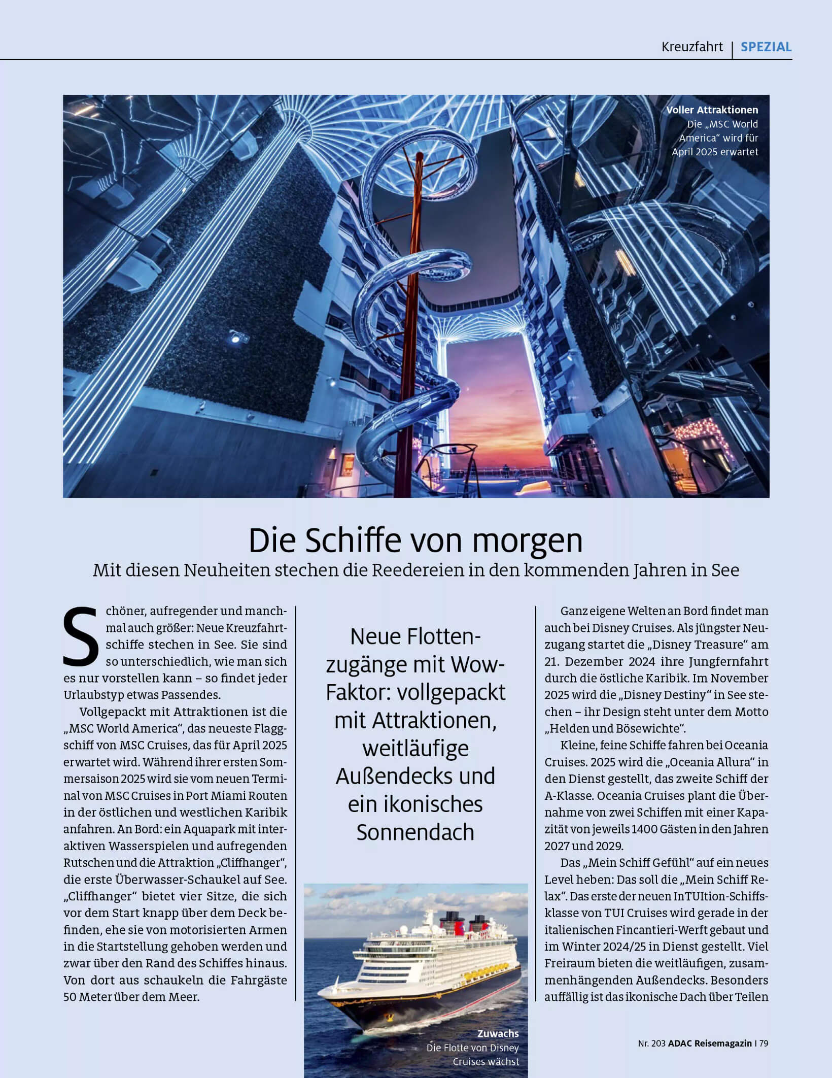 Für das ADAC Reisemagazin Nr. 203 bin ich tief in die Kreuzfahrt-Recherche eingestiegen.