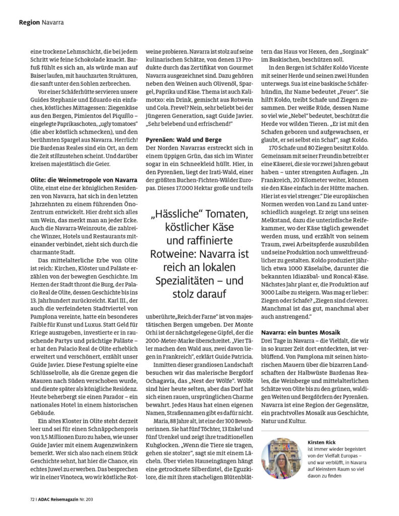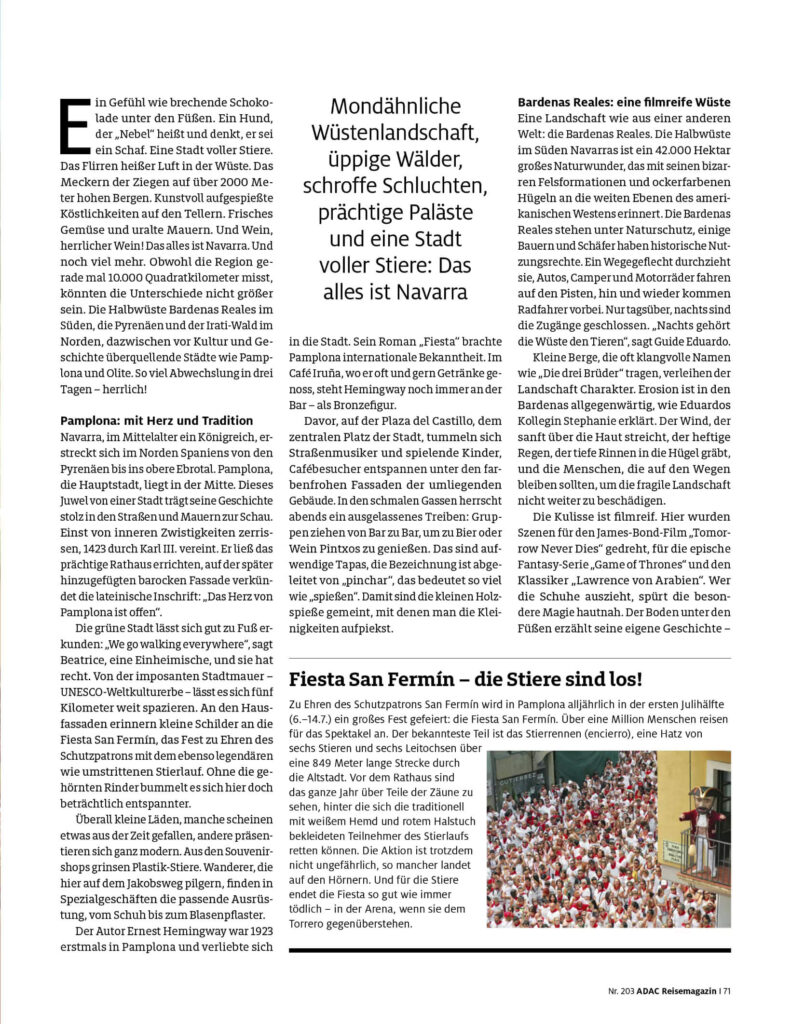 Für das ADAC Reisemagazin Nr. 203 habe ich mir Navarra angesehen.