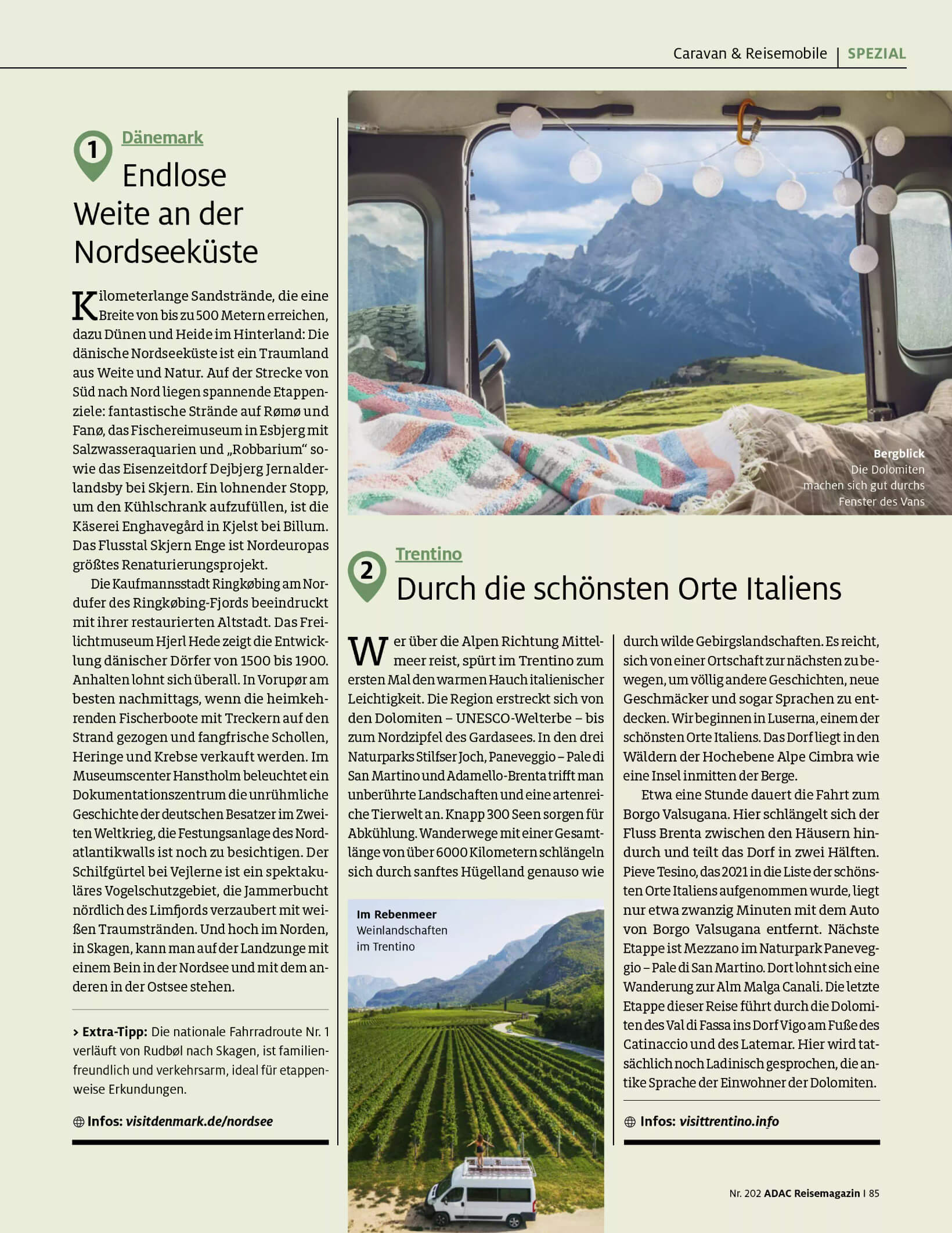 Für das ADAC Reisemagazin Nr. 202 habe ich, die sonst mit dem Zelt unterwegs ist, mich in die Wohnmobil-Welt begeben.