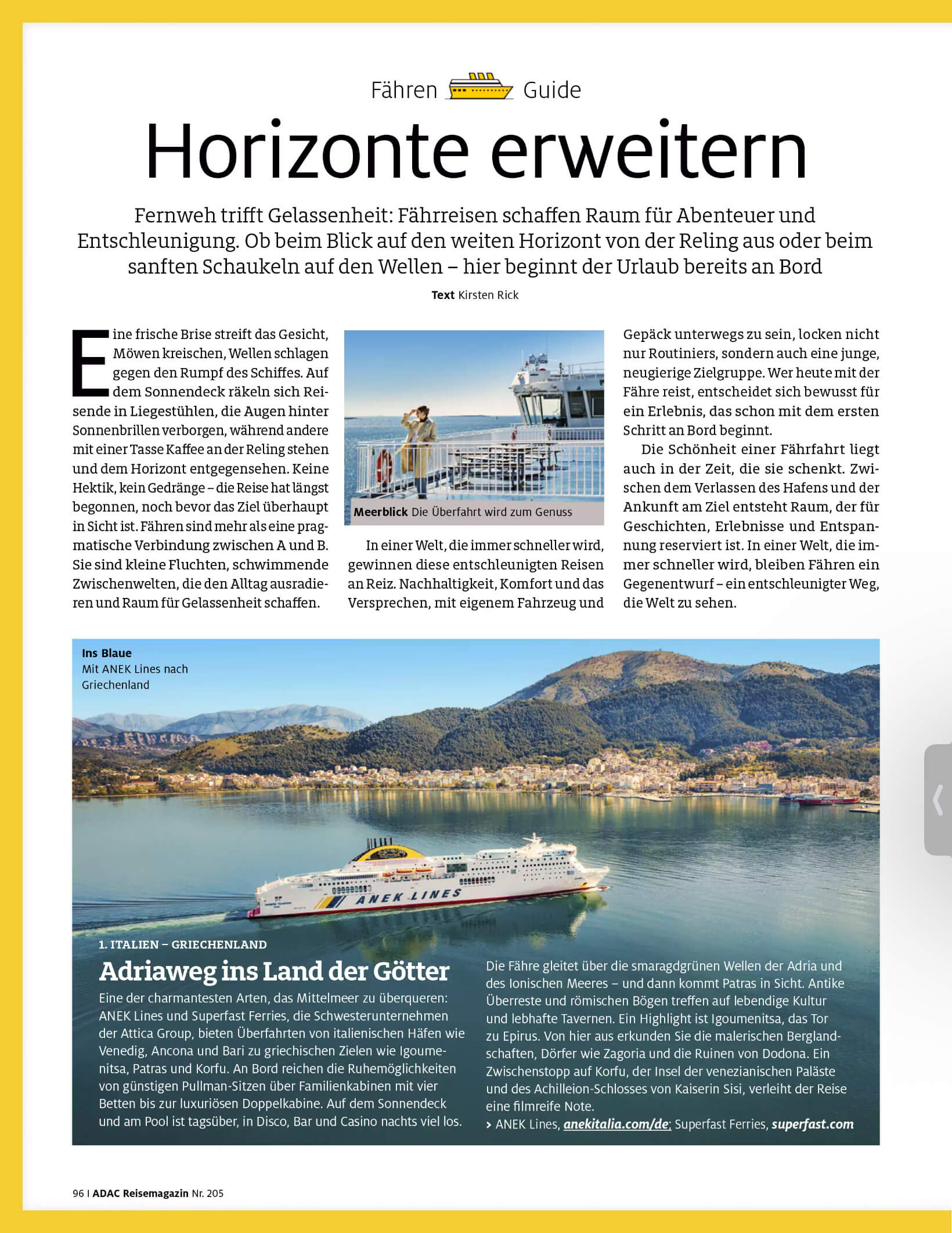 Für das ADAC Reisemagazin Mai/Juni 2025 habe ich den Fähren-Guide recherchiert und geschrieben.