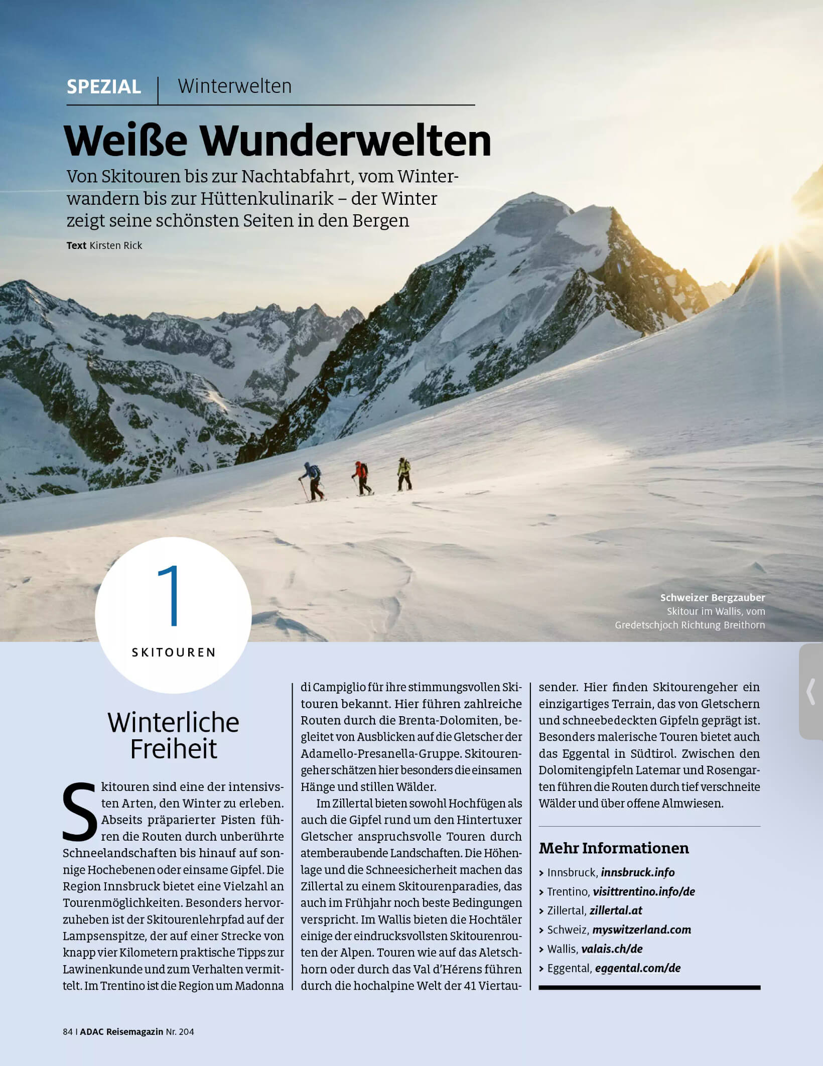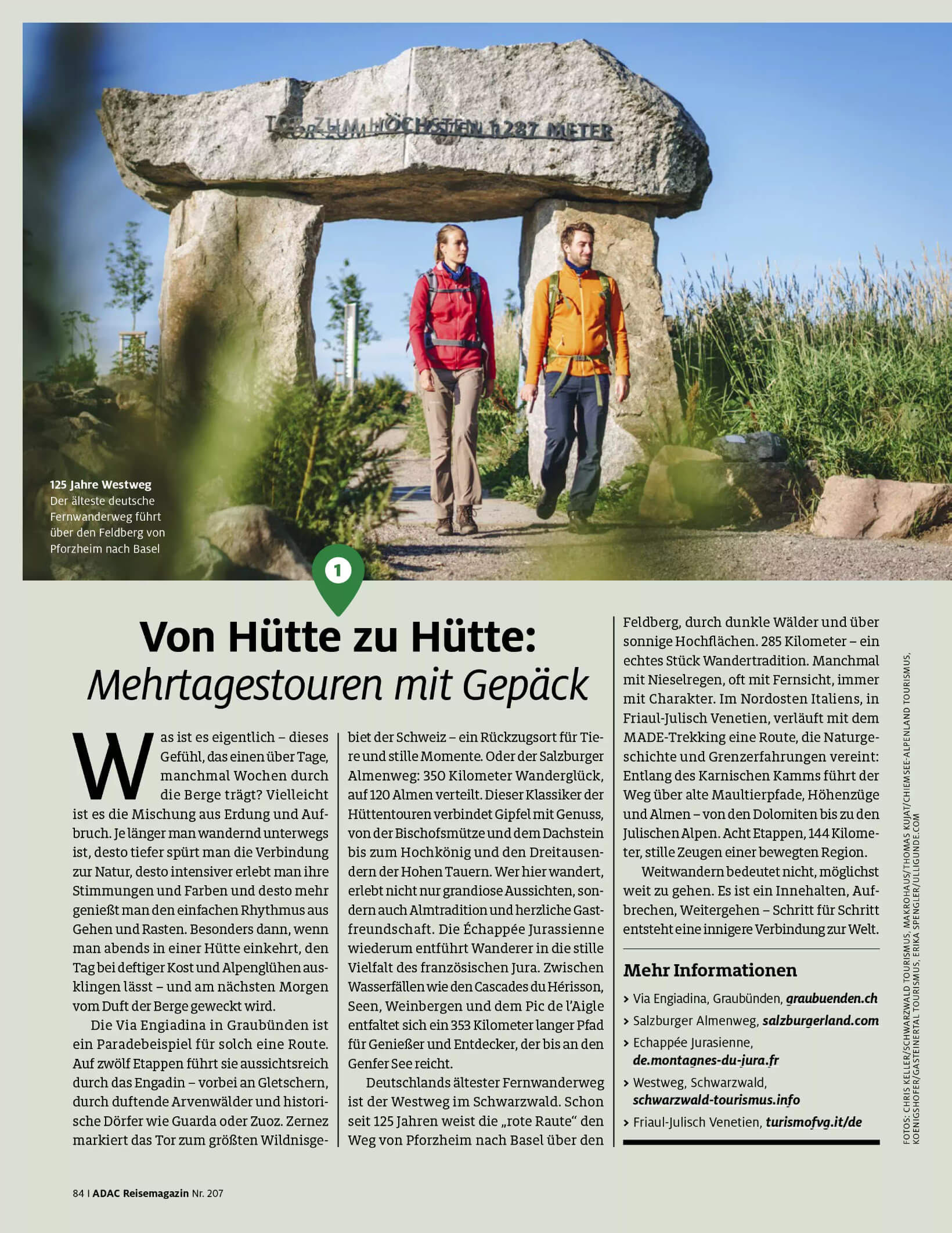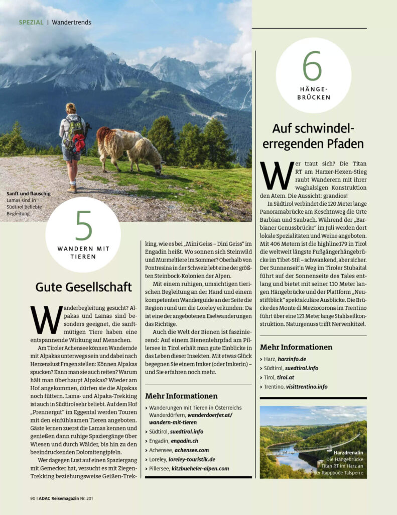 Für das ADAC Reisemagazin Juli/August 2025 habe ich ausführlich Wander-Routen und -Möglichkeiten recherchiert und beschrieben.