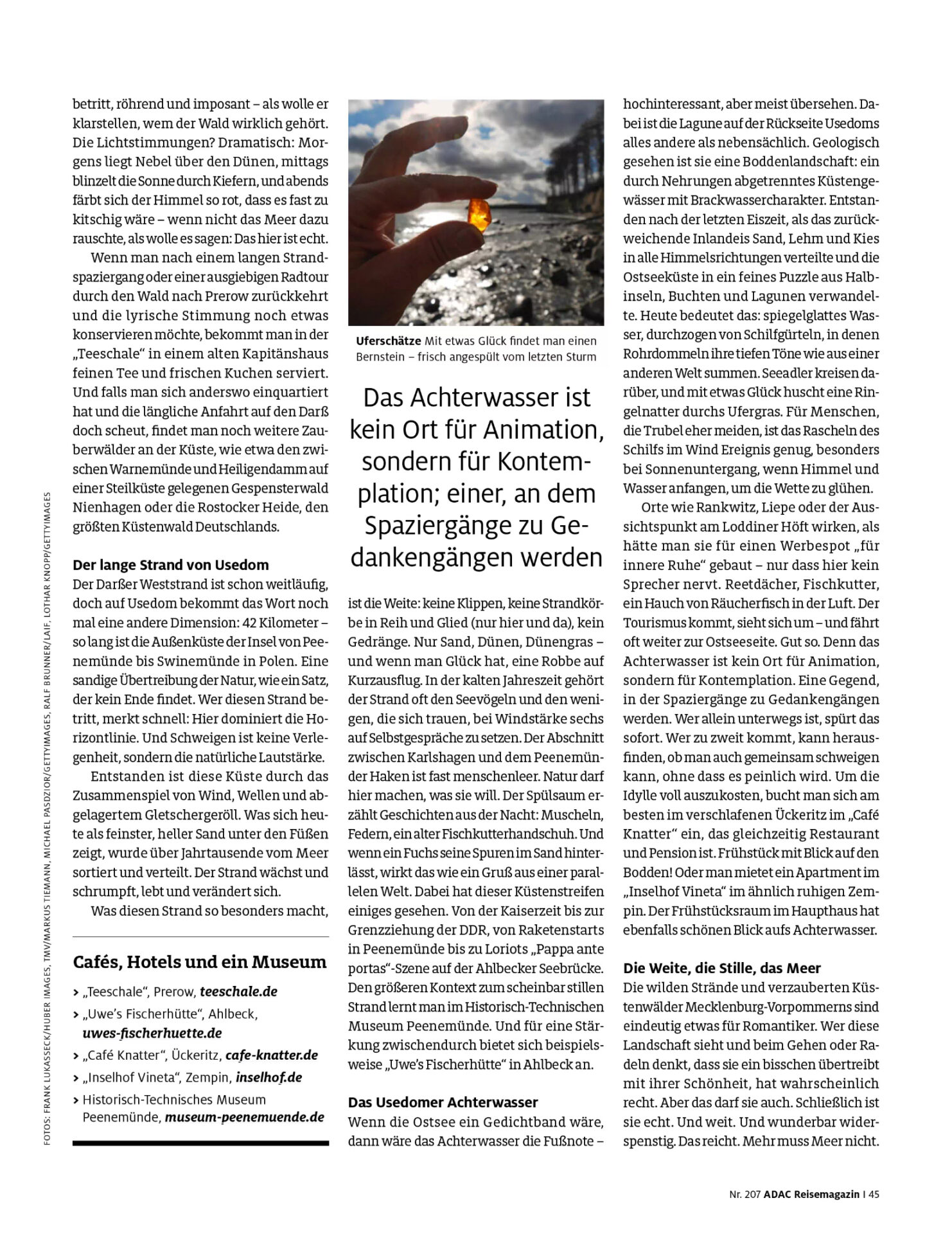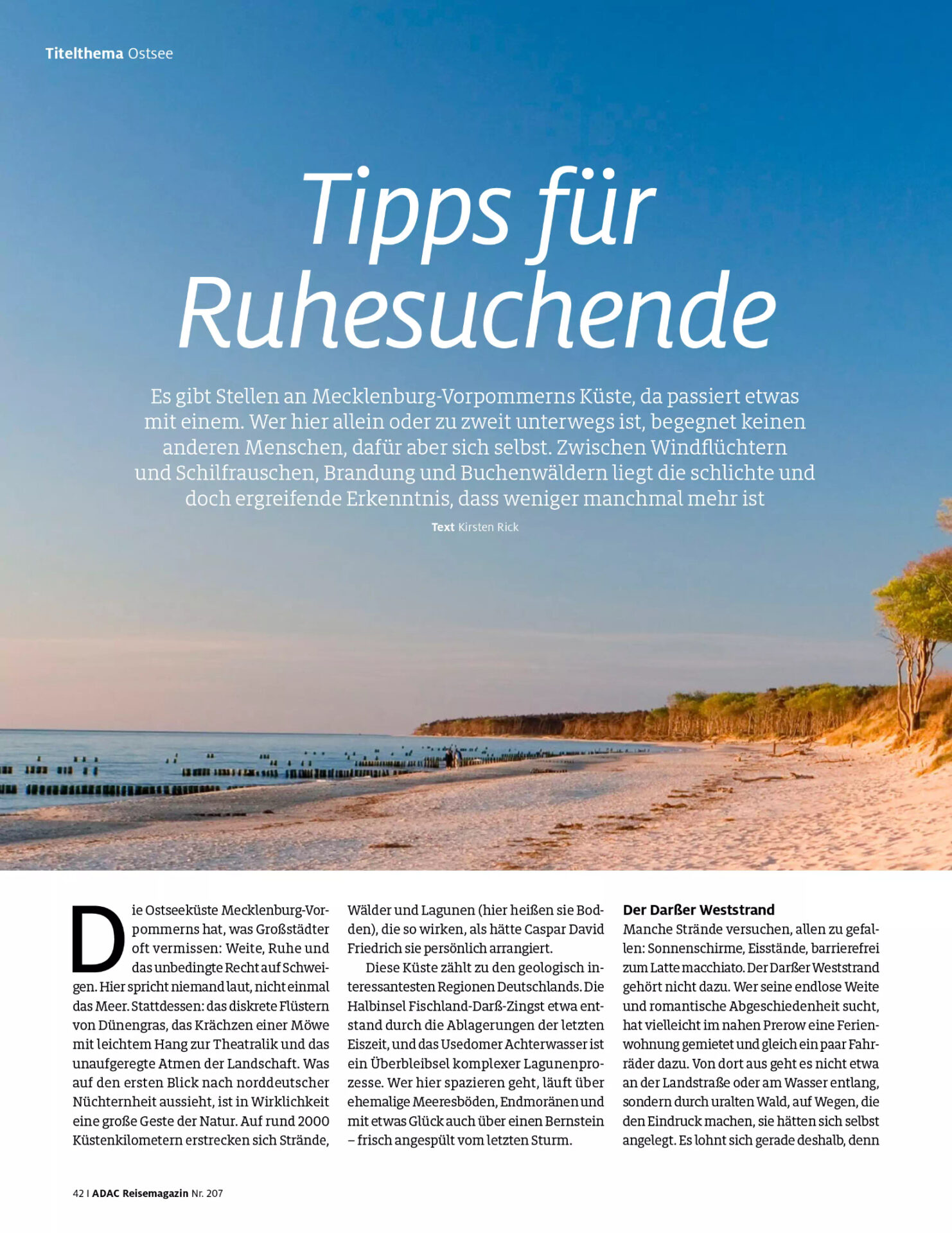 Für das ADAC Reisemagazin Juli/August 2025 habe ich mich mit den ruhigen Orten der Ostseeküste in Mecklenburg-Vorpommern beschäftigt.