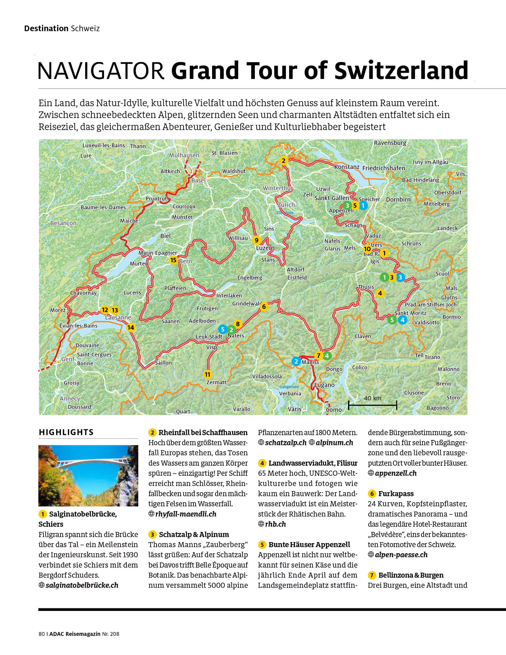 Für das ADAC Reisemagazin September/Oktober 2025 habe ich über die Grand Tour Switzerland geschrieben. In meinem Blog findet Ihr weitere Schweiz-Beiträge, zum Beispiel diesen: Schweiz: 9 Gründe, das Tessin zu lieben