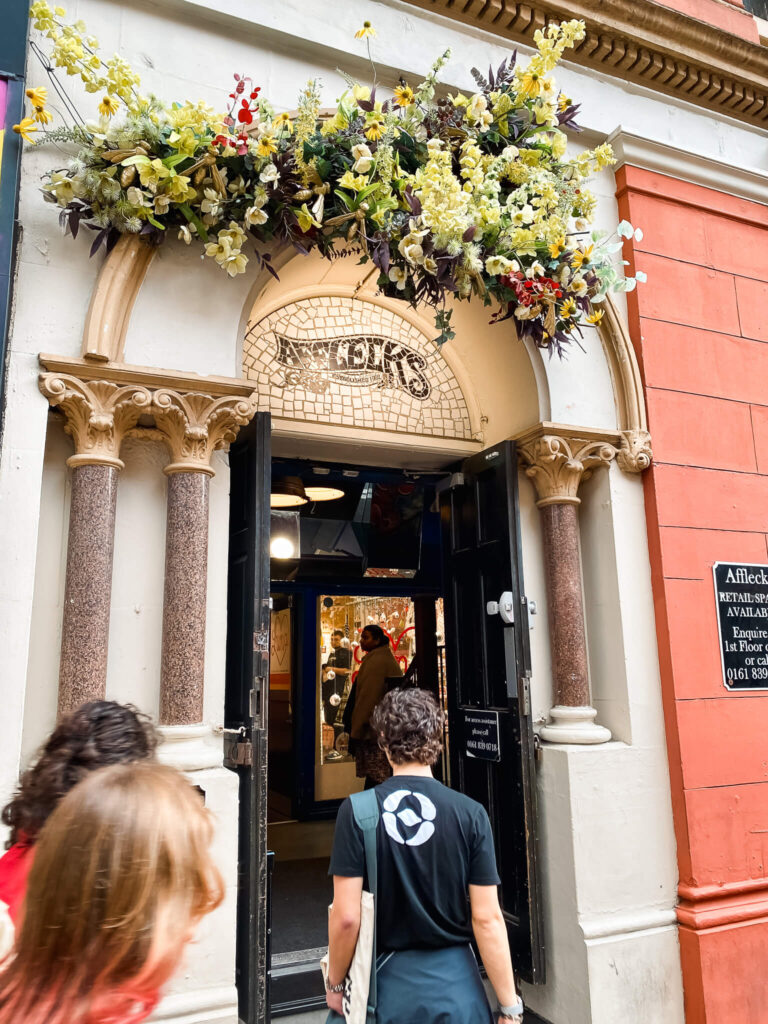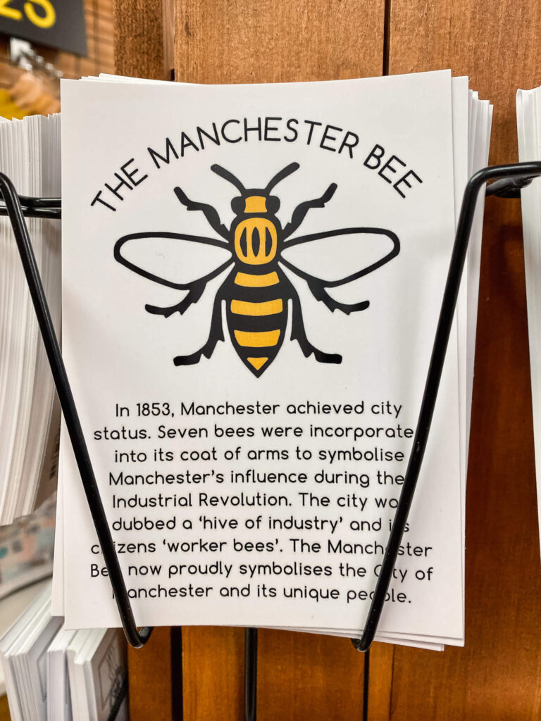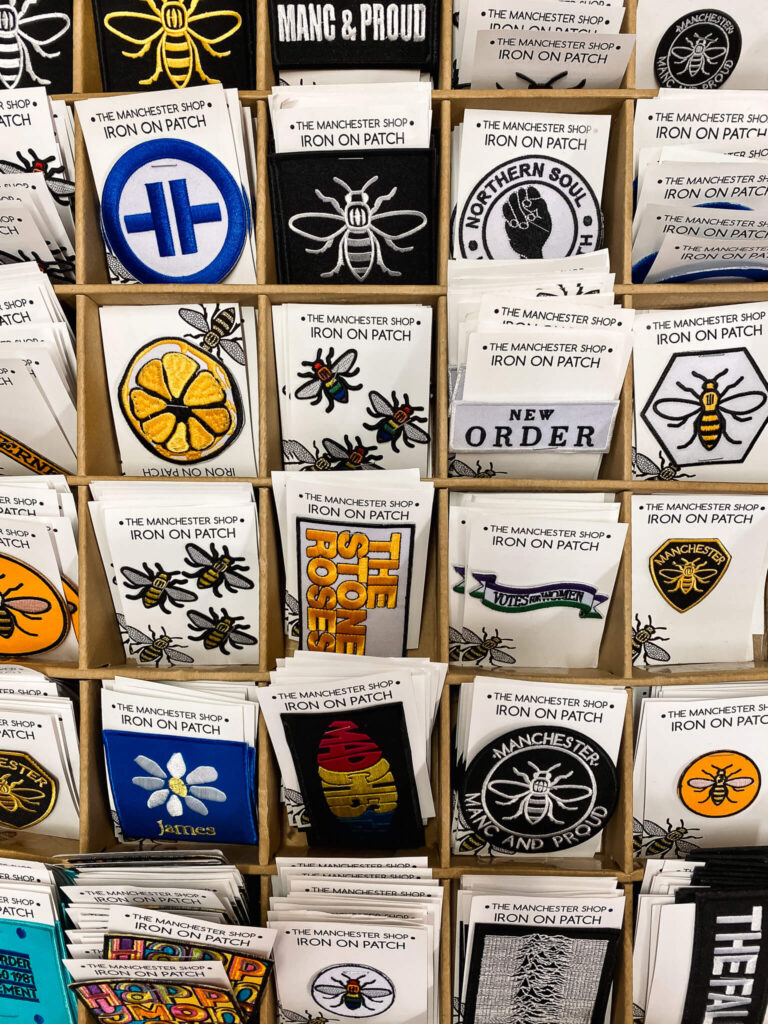 Seit 2016 ist der Manchester Shop im Afflecks. Dort gibt es allerlei Souvenirs, Drucke mit Songzeilen (Love will tear us apart). Hier, zwischen Tassen und Tea Towels, wird schnell die Bedeutung von Manchester als Music City klar. Auch die Biene vom Stadtwappen, das Manchester Symbol schlechthin, wird hier gefeiert.