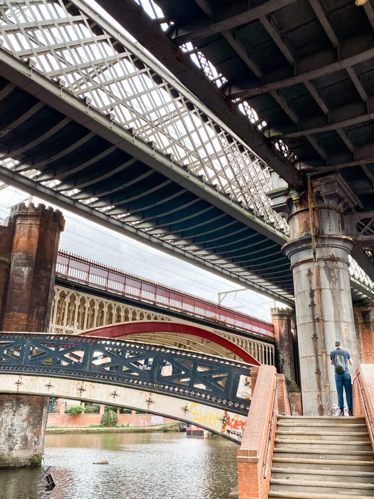 Im Stadtteil Castlefield liegt die Jugendherberge YHA direkt am Kanal. Toller Blick aus dem Fenster auf verschiedene mächtige Brücken, den Kanal und ein paar Hausboote. Das Museum of Science ist gleich um die Ecke, die Station Deansgate ist nicht weit. In der mit unserer Zimmerkarte zugänglichen Küche kochen wir Tee.