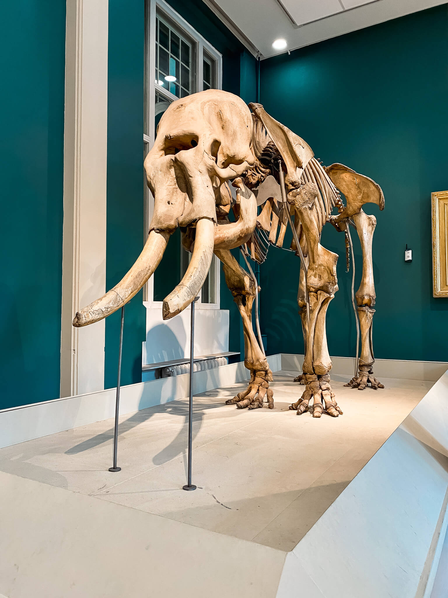 Nur ein kurzer Blick hinein, es liegt auf dem Weg. Ich habe keinen Bock auf Dinosaurier, sagt M.. In der Eingangshalle ein großes Skelett. Deutlich kein Dino, eher ein Mammut. Nein, es ist ein Elefant. Ich lese noch das Schild, da kommen ein paar Mädchen vorbei und kreischen leise „dinosaur“!