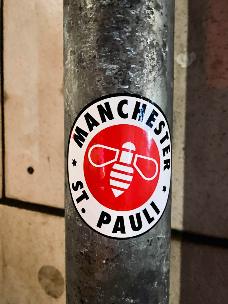 Die Biene gehört seit 1842 ins Stadtwappen. Sie steht für den Fleiß der Arbeiter, die Manchester einst zur Weltmacht der Baumwolle machten. Sieben Bienen auf einer Weltkugel symbolisieren den globalen Anspruch: sieben Tage Arbeit, sieben Ozeane.